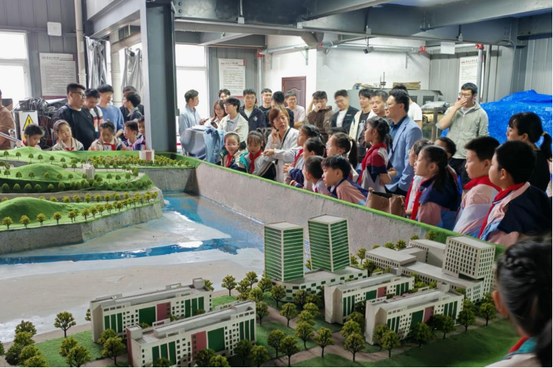 在水利实验室,小朋友们参观了大型三级水利枢纽模型,听取了讲解员的细致介绍,并就感兴趣的问题踊跃提问,在互动中加深了对水利知识的理解。在结构实验室,大家近距离观摩“环境耦合大型科学实验装置”,了解到该装置的应用情况,并学习了地震原理与建筑抗震知识,拓宽了科学视野。