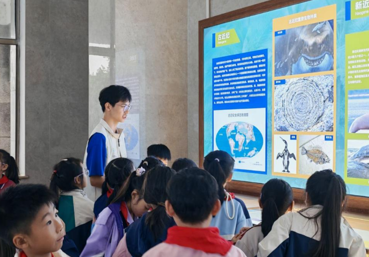 在智能微馆,机械臂的精准操作与大疆无人机的展示引来小朋友们的阵阵惊叹,老师的详细讲解让大家切身感受到智能科技的高效与魅力。在地质博物馆,志愿服务队的同学为孩子们普及了地质变迁、资源集聚、矿石奥秘以及矿业发展等方面的知识,让小学生们对地球科学有了更加全面的认识。